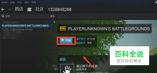 首先打开steam,选择绝地求生游戏点击【开始】。