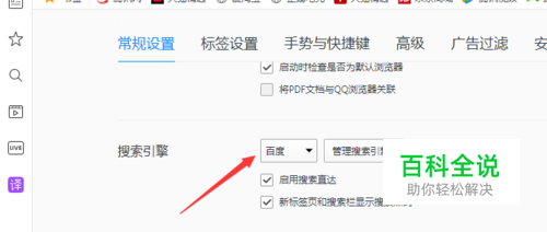 点击了搜索引擎之后,弹出了下拉菜单选中为 百度 的选项。