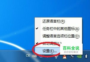 windows 7 操作系统桌面右下角的小键盘上点击右键,选择设置这个选项。