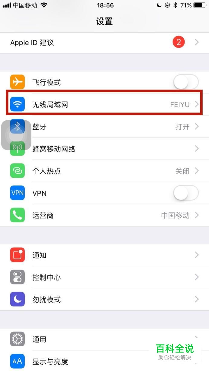 然后点击无线局域网,如下图所示。