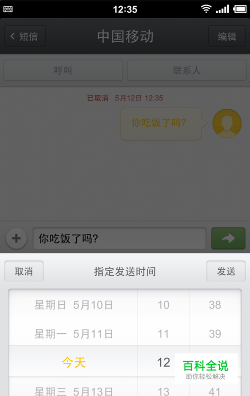 然后松手,手机会弹出“制定发送时间”的界面,选定需要发送的时间后点击右上角发送按钮即可。