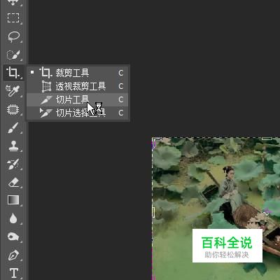 切图我们需要用到切片工具。我们从工具栏中调出切片工具。