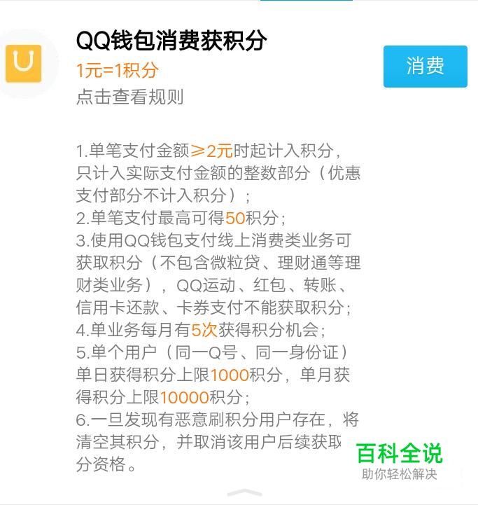 首先,最简单的方法就是QQ钱包消费来领积分,一般的话是一块钱一个积分。