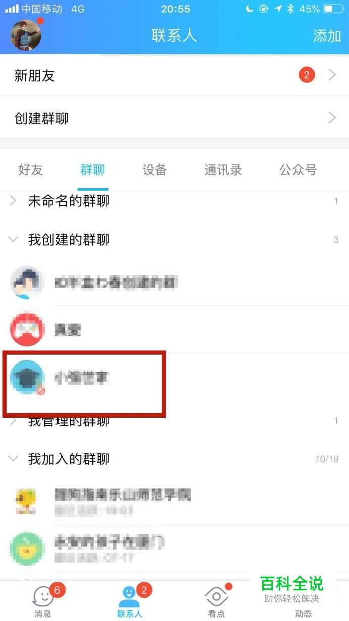 然后点击一个我们自己所创建的QQ群,如下图所示。