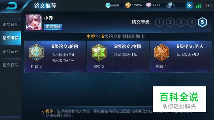 首先,我们都知道王者荣耀不仅出装重要,铭文也很重要。小乔的铭文搭配是:轮回,怜悯,圣人。