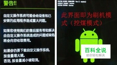 将手机彻底关机,然后再关机的状态下,同时按住【电源键】+【Home键】+【音量下键】等待3秒,然后再按音量上键,进入界面为绿色机器人,此为刷机模式,如下图;