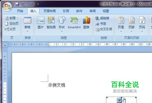 插入后的效果如下图,这个“123”文件我们并不能找到他单独的文件保存的位置,可以理解为,他是被包括在了示例文档中的一部分。