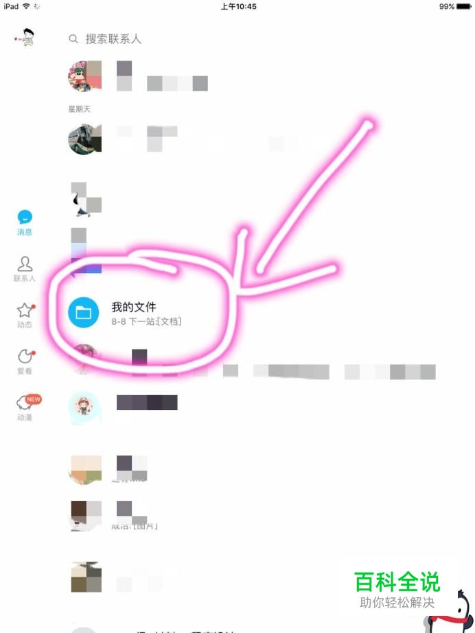 接着,登录进去之后,找到QQ消息一栏中有“我的文件”这一字样。
