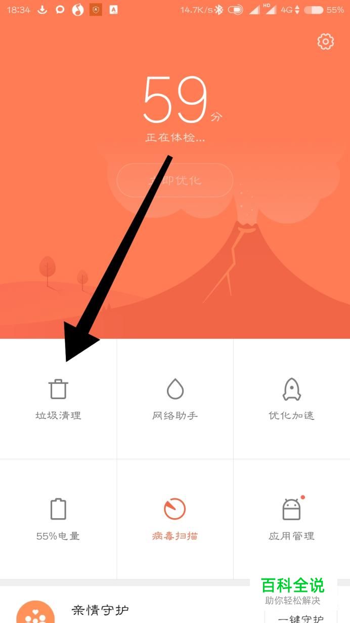 如果还是卡顿的话,打开我们的手机管家,选择垃圾清理。