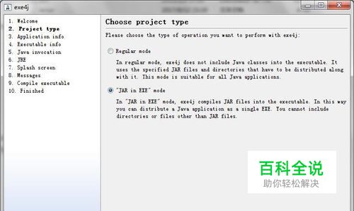 首先打开exe4j将jar打包成exe文件,具体操作不在这赘述,说两个注意点就好。首先模式要选对,选jar-exe