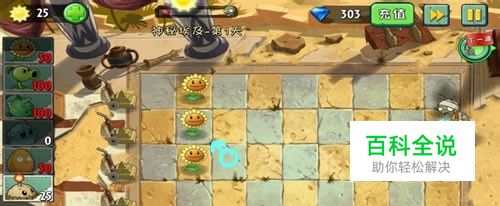 收集阳光,在第一只僵尸出来的时候,可以种三个向日葵了。第一只僵尸出来后,放个冻菜冻住。