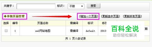 【单独页面管理】主界面的右侧点击【增加一个页面】。