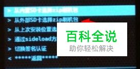 双清完成后,选择对手机安装刷机包,选择【安装zip格式刷机包】,然后选择【从外部SD选择zip刷机包】,然后找到刚才放置在SD卡根目录下的刷机包,如下图;