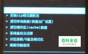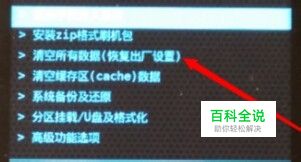进入recovery主界面后,选择对手机进行双清,移动选择【清空所有数据(恢复出厂设置)】和【清空缓存区(Cache)数据】然后电源键确认清除,如下图;