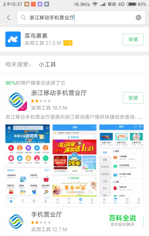 先下载一个浙江移动手机营业厅。打开应用商店等软件,搜索“浙江移动手机营业厅”,点击“安装”。