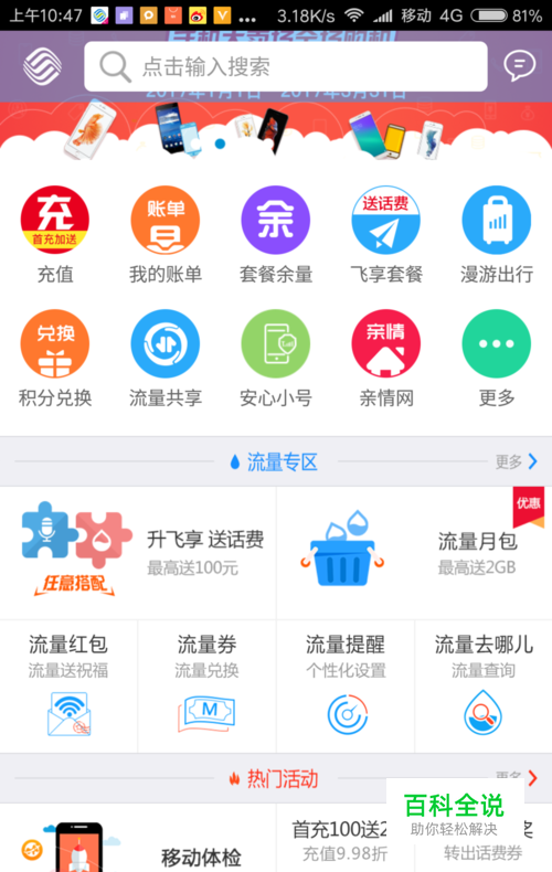 首次登录还送百兆流量券,点击后即可领券。