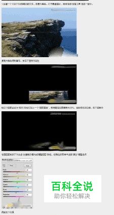1.创建一个1300*700像素的新文件,背景为黑色。打开悬崖图片,使用“矩形选框工具”选择一部分