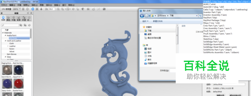 导入3D模型 单击KeyShot操作界面下部的“导入”按钮即可导入多种类型的3D数据文件。KeyShot支持目前市面上众多的三维软件文件格式,例如:OBJ、SolidWorks、Rhino、SketchUp、STEP、3DS、IGES、FBX和WIRE等。