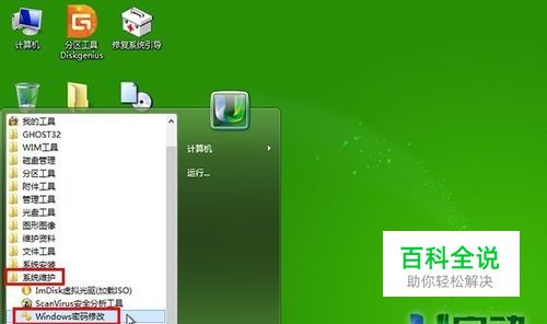 进入到win8pe系统后,点击桌面左下角windows图标——系统维护——windows密码修改,如下图所示: