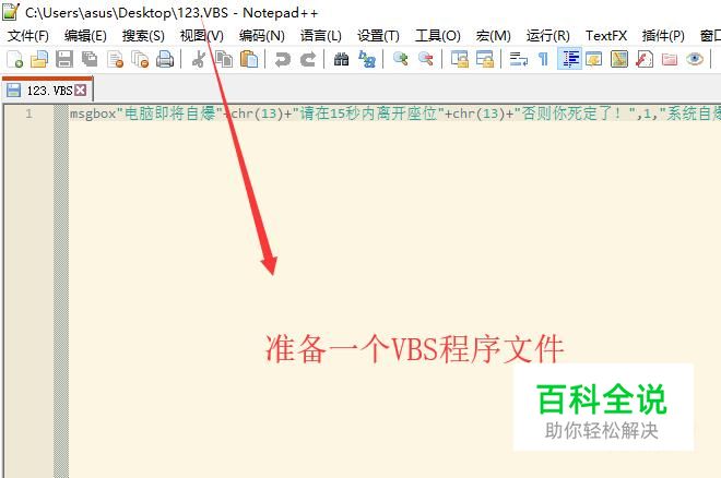 首先我们准备一个VBS文件,在其中加入VBS整人代码,如下图所示