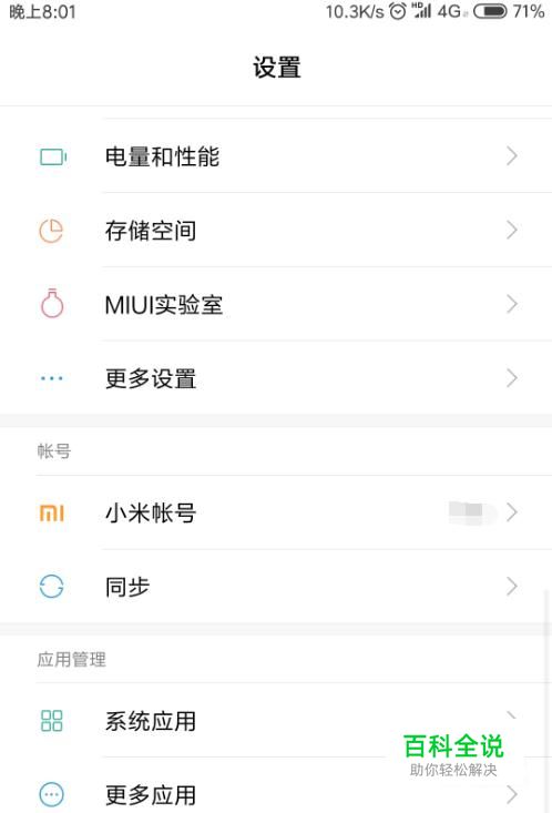 在设置中找到小米账号并点击进入