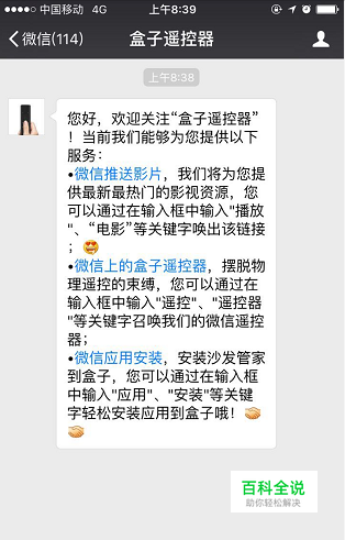 微信关注“盒子遥控器” 微信关注"盒子遥控器",关注后,跳转页面如下,点击屏幕中间的“微信安装”和屏幕右下角的“应用” – “应用安装”,均可进入沙发管家安装界面。