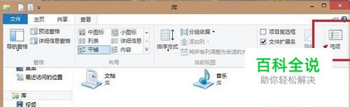 我们会发现Win8文件夹选项设置基本都在这里,并且设置显示文件夹选项还隐藏在最右侧的“选项”里边: