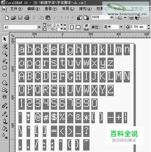 按照以上的步骤,依次将其余的字母及符号追加入那个文件,一个基本的符号字体文件初步己制作完成了。