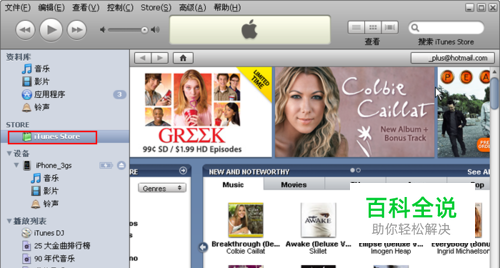 如果想在iPhone上玩游戏,首先你需要注册一个iTunes帐号,然后就可以登陆iTunes来购买游戏了,打开iTunes,在左边菜单栏选择iTunes Store。