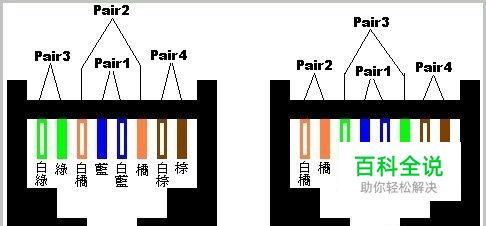 准备好一根网线,长度比两台电脑的距离稍长即可。要注意的是下图连接电脑的网线两端的网线线序是不一样的,如下图是网线两头的线序。按这种标准作出的网线就是反转线。