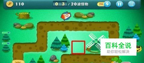保卫萝卜丛林主题第7关,难度为:冒险模式,是否有BOSS:有,本关怪物波数:20,本关可建造炮塔:风扇、星星、魔法球、汽油瓶、太阳、火箭,保卫萝卜丛林7关开局,共有500金钱可以使用。下面开始第一个步骤,在红色方框内建造1个火箭,然后升为中等级别。火箭的威力很大,但是攻击间隔比较长。