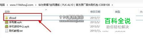 首先机友们可以到【114手机乐园】下载华为荣耀7的官方原厂固件,对应你自己的版本下载相应的机型。