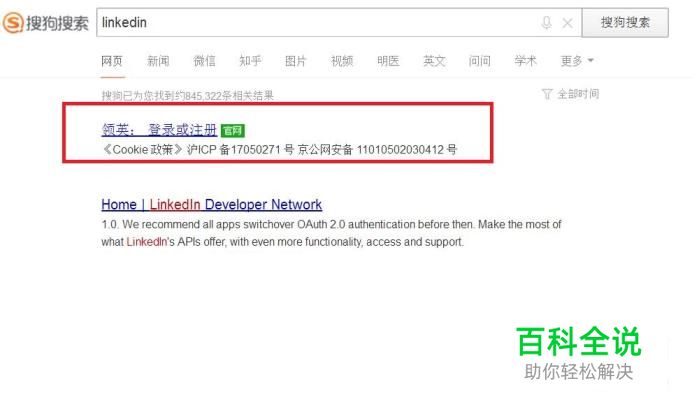 首先,使用搜索引擎搜索“linkedin”关键字,在搜索结果列表中,点击进入领英官方页面。