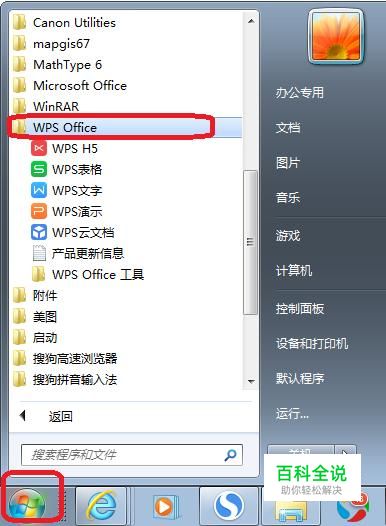 首先,我们点击开始菜单,找到WPS,点击一下。