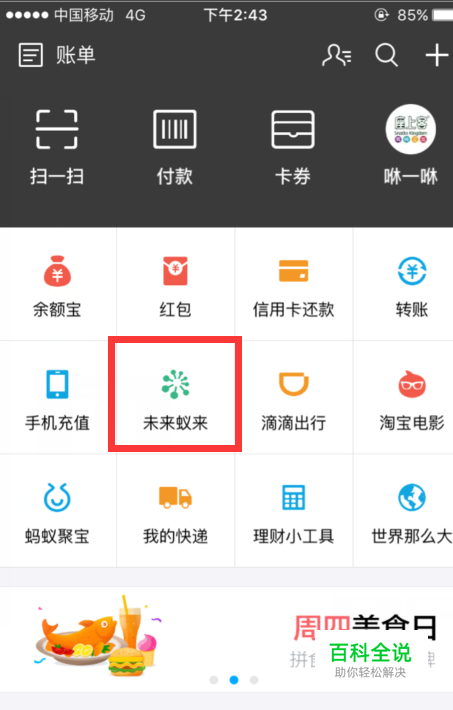 今天在玩手机的时候偶然发现支付宝上新加了一个未来蚁来的功能,挺有意思的,下面介绍给大家