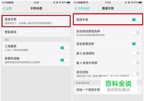 2、然后点击黑屏手势--将黑屏手势的开关打开,即可进行相关设置。