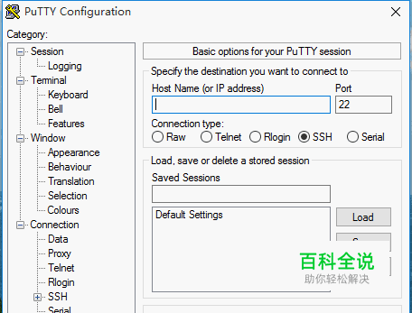 Linux系统相对来说会比较麻烦,它是使用ssh服务来提供远程连接的。因此需要借助诸如putty、xshell、secureCRT等工具进行连接才能登录远程服务器。通常来说,会选择下载putty来连接,打开界面如下: