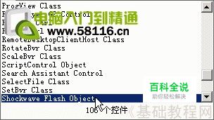 在下拉列表中找到S打头的“Shockwave Flash Object”命令,点击选中;