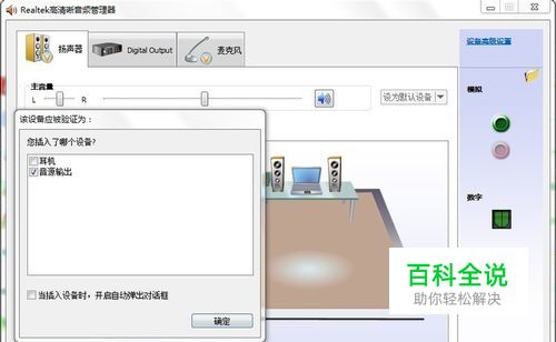 2、双击右边”模拟“下面的那个绿色的小点,弹出如下对话框,选择”音源输出“,点确定,这样就基本听不到电流声音了! (原来默认的是"耳机",改成“音源输出”后,声音音量下降,预计是串联了噪声匹配电阻。在电路学科中,噪声匹配可以降低噪声功率,提升音质。但是的作用原理不是。)