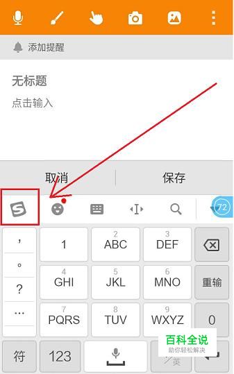 首先,在输入界面唤出搜狗输入法,在功能栏中,点击一个图标为“S”的选项进入菜单栏。