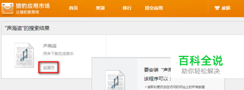2.在搜索栏输入“声海盗”,点“安装”→“安装”。