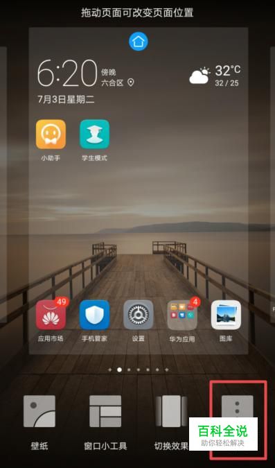 首先,我们打开我们的华为手机,然后长按手机桌面的空白处;