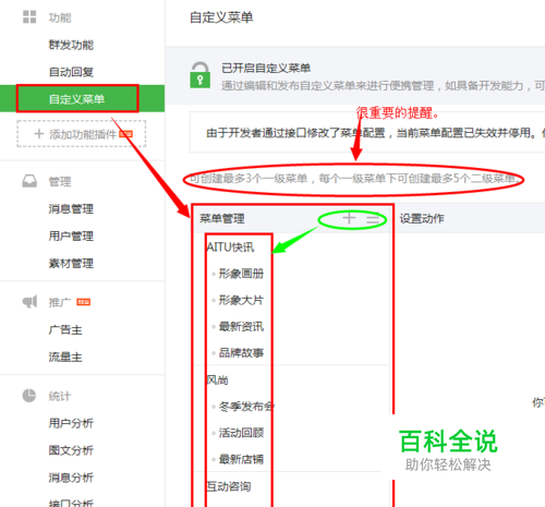已经认证的微信公众号,在功能里面点击“添加功能插件”,选择自定义菜单。这个都是每个微信的基本功能。