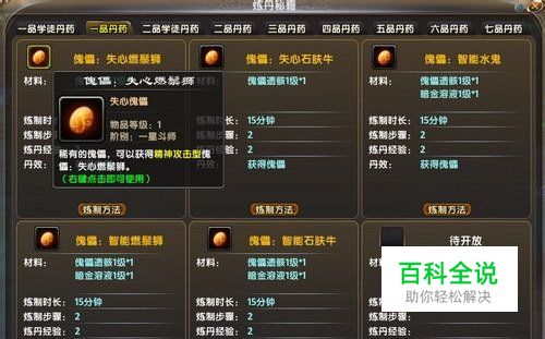 傀儡分失心、智能、变异三种。失心傀儡无法进行傀儡炼化、智能傀儡可以进行炼化,而变异傀儡智能由炼化而获得。玩家在炼制傀儡时按照配方付出材料,即可炼制出相应傀儡。 傀儡界面 玩家可以在丹方中查到自己已经学会的傀儡配方。 炼丹秘籍-傀儡配方 傀儡配方与药方一样,随着炼药师等级的提升,所能炼制的傀儡会越来越多,所以玩家想要强力傀儡也需要努力提升炼药师等级。 傀儡炼制需要傀儡遗骸,击杀野外的怪物首领就有几率掉落傀儡遗骸。而炼制智能傀儡则需要暗金溶液,暗金溶液需要前往丹界采集。在帝都城秦若离(277,202)处可进入丹界。 暗金溶液可以在丹界中进行采集,值得一提的是,丹界中也有着非常丰富的矿物和骨资源,玩家采集后就可以炼制智能傀儡。 智能铁木傀儡 智能掘墓人