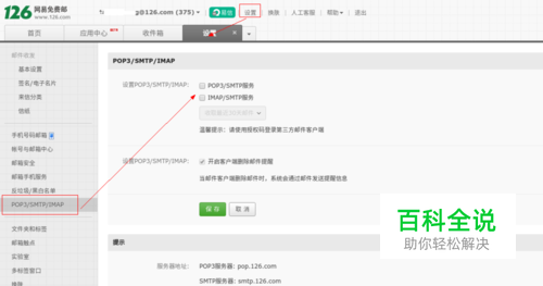 第一步,登录邮箱打开设置 登录你的邮箱,并在设置中找到POP3/SMTP/IMAP。如下图