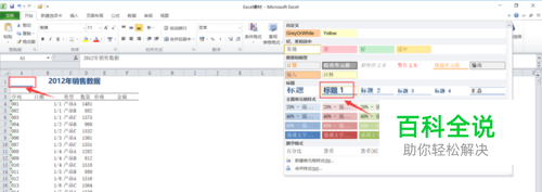 在“销售记录”工作表的A1单元格中输入文字“2012年销售数据”,并使其显示在A1:F1单元格区域的正中间(注意:不要合并上述单元格区域);将“标题”单元格样式的字体修改为“微软雅黑”,并应用于A1单元格中的文字内容;隐藏第2行。