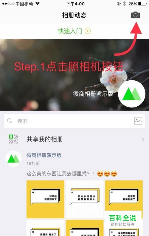 打开微商相册,点击右上角按钮