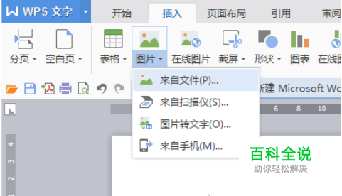 双击打开word文档,单击工具栏的【插入】按钮,下拉【图片】,选择“来自文件”