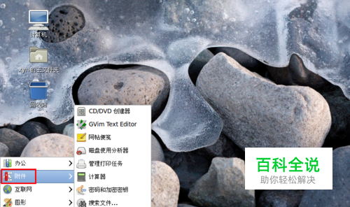 点击系统菜单栏的“应用程序”,然后在弹出菜单中点击“附件”,之后在附件子菜单中选择“终端”