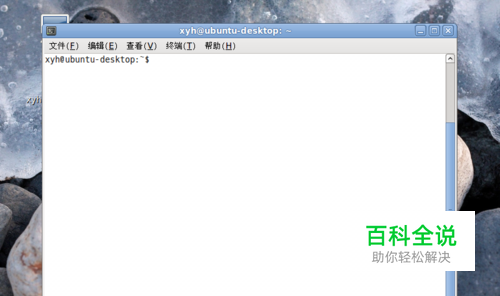 点击“终端”后,就可以打开终端工具,终端工具打开后如下图所示,它类似于windows系统的命令提示符工具,只是终端的功能更为强大